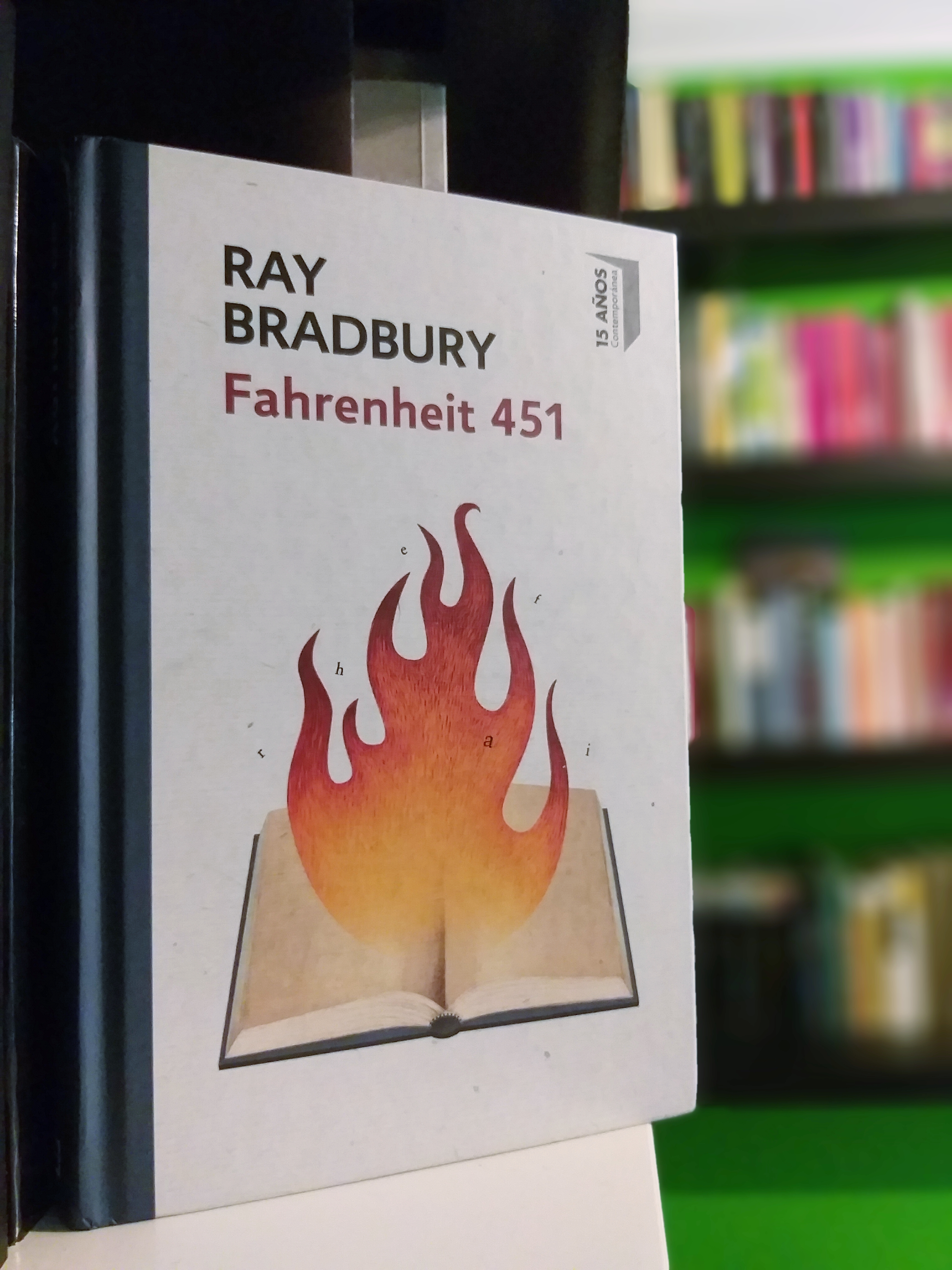 Ray Bradbury (Waikegan, 1929 – Los Ángeles, 2012) pertenece a esa difusa rama de creadores de distopías que, en algún sentido, han acertado en su visión de futuro. Con el antecedente de la quema de libros de 1933 por los nazis, y aupado por su pasión por la ciencia ficción, desató en esta novela su preocupación por el binomio sociedad-individuo, las consecuencias de la censura y la rendición a las pantallas de entretenimiento. De hecho, la portada de mi libro (primera edición de edición 15 año contemporánea, 2018, Debolsillo) es una llamarada que surge de un libro abierto, que o bien se quema o bien prende con sus palabras. Con treinta y tres años creó esta visión futurista en la que se ha renunciado a los libros y las conversaciones, a favor de la velocidad, los realitys shows y la violencia. Una duda sobrevuela la historia: ¿Estamos vencidos?